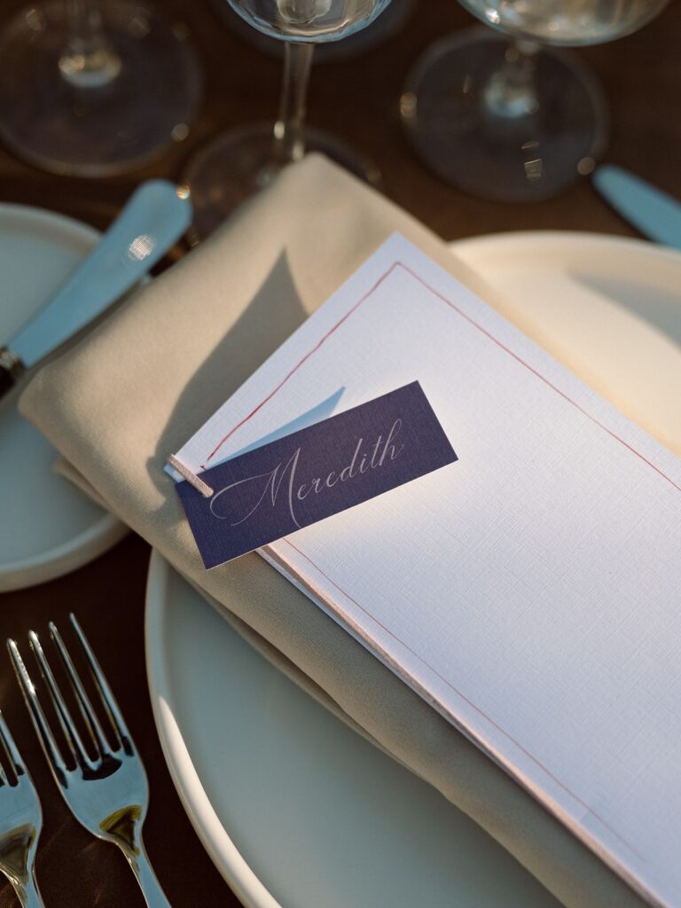 Guests were greeted with programs at each seat, wrapped in a custom-embossed leather monogram. It was a small touch that added so much warmth and cohesion to the day.