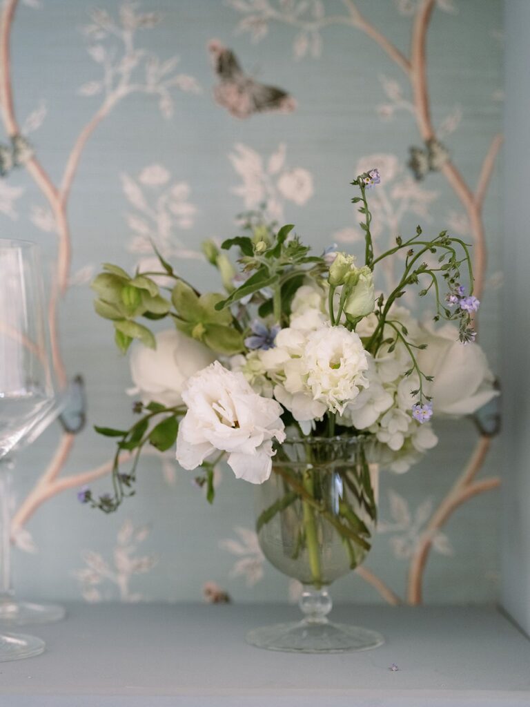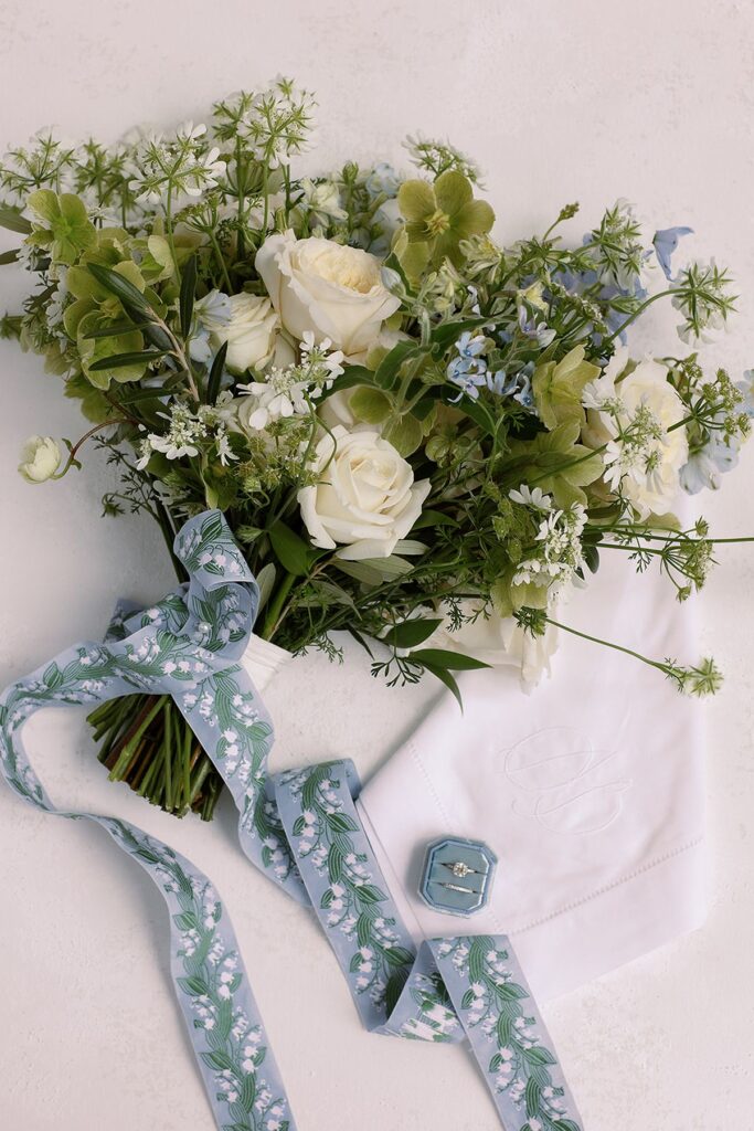 The couple’s favorite colors—soft blues and whites—carried throughout the design. From the stationery suite to the tent interiors, the palette created a light, airy, and welcoming environment.