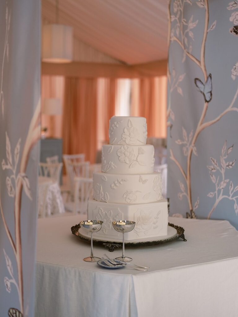 One of the most memorable elements of the day was the custom awning we installed over the cake. Inspired by Gracie wallpaper, it became the focal point of the reception.