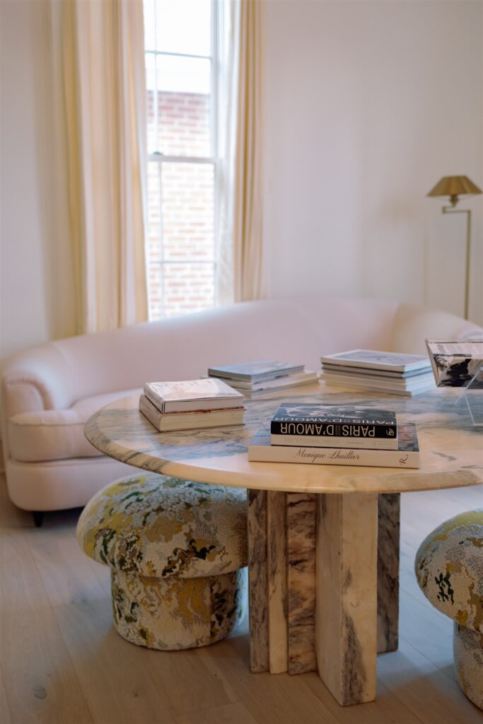 Located in Nashville’s historic Germantown neighborhood, The Sloane blends turn-of-the-century architecture with a modern French elegance. The venue’s design connects two century-old homes with a new, light-filled ballroom, creating a layout that moves seamlessly from intimate ceremony spaces to lively receptions. Original brick walls, marble floors, and copper lanterns give the property a sense of history, while glass doors, chandeliers, and creamy tones add a contemporary feel.